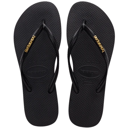 HAVAIANAS SLIM LOGO METALLIC JANDAL - BLACK/GOLD