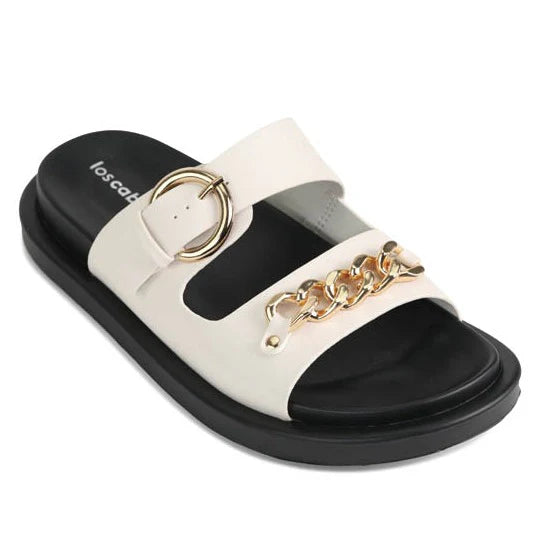 Need to make a statement? ALANI slides will do the trick! With metallic hardware and a double strap, these slides will make your feet shine brighter than the stars. The chain embellishment and adjustable strap will keep you comfy and looking good. Now that's a win-win!